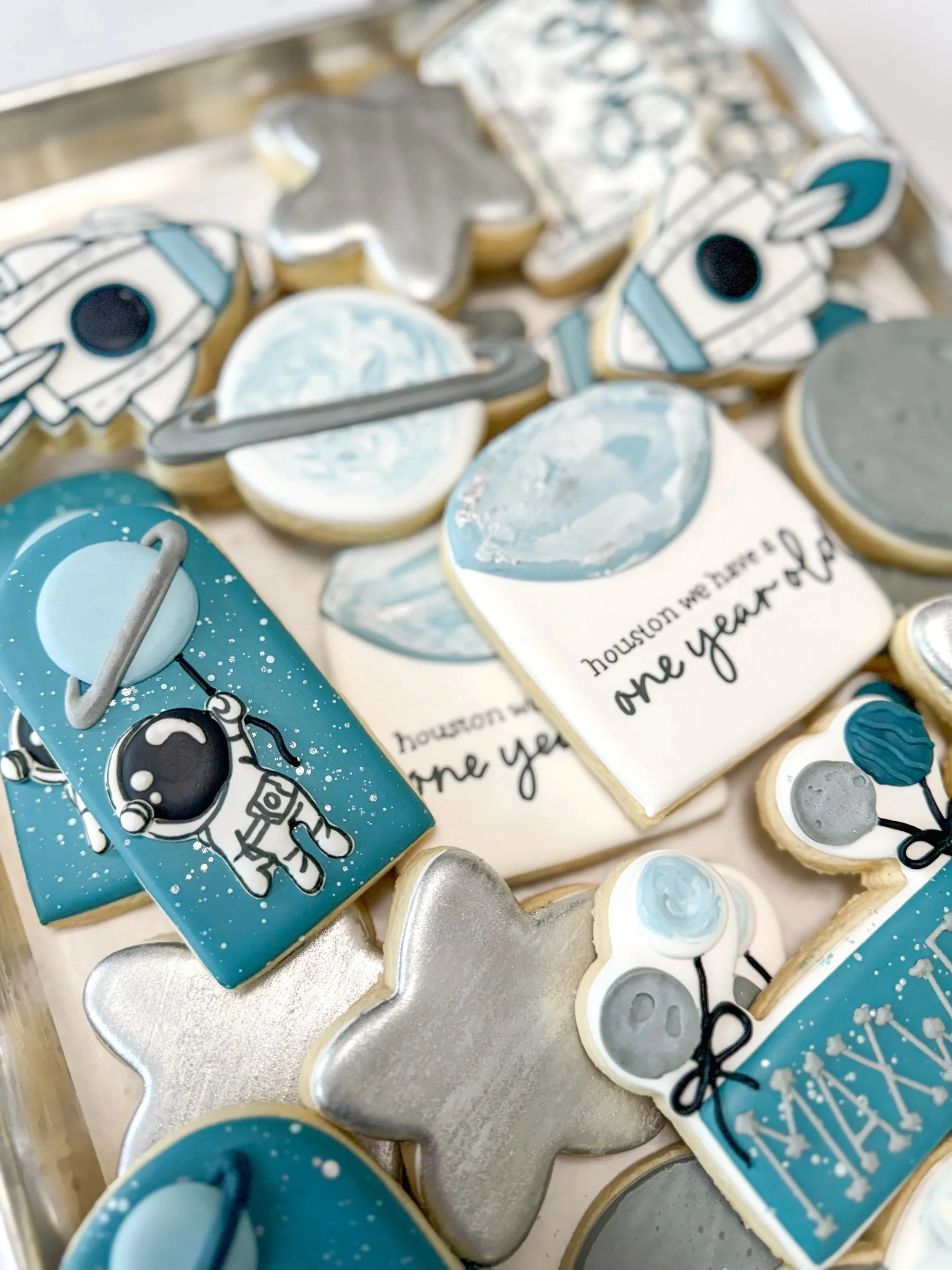 Pricing begins at $90/dozen for full sized cookies (approx. 3-4”). Price subject to increase based on colors and extent of design and detail (ex. metallics, font work, florals, watercolor and airbrushing).